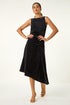 Roman Black Velvet Side Ruched Stretch Midi Dress