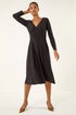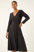 Roman Black Wrap Bodice Tie Waist Midi Dress