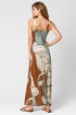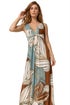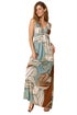 Roman Blue Abstract Leaf Print V Neck Maxi Dress