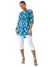 Abstract Longline Button Detail Tunic Top from Roman. A sure-fire way to inject some print into your looks, this longline tunic top is sure to turn heads with its contrasting abstract print. Featuring 3/4 length sleeves, a flattering notch v-neck and a statement shiny button, this top is halfway between smart and casual. Dress it up or down to suit your occasion. This timeless blouse can be paired with cropped trousers to really make a statement or toned down with a blazer and trousers for work.