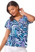 Abstract Print Stretch Tunic Top from Roman. Liven up your wardrobe with this stylish abstract wave print top, perfect for the Spring/Summer season. Featuring a fun notch neck and short sleeves, this top boasts an all over eye catching print. Falling just below the hip, this stretchy top offers a comfortable and flattering fit. Pair with jeans and sandals for a chic and laid-back casual look that's bound to turn heads!