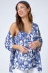 Roman Blue Abstract Print V-Neck Stretch Jersey Cami Top