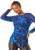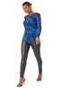 Roman Blue Blurred Print Ruched Stretch Mesh Top