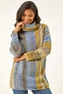 Roman Blue Boucle Stripe Cowl Neck Jumper