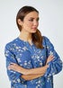 Roman Blue Cotton Floral Print V-Neck Overshirt