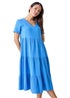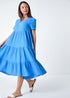 Roman Blue Cotton Textured Tiered Midi Dress
