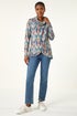 Cowl Neck Snit Top from Roman. Stay stylish and snug this Autumn in this cowl neck top. Crafted from a soft knit fabric, this top features a flattering cowl neckline and a chic cross-over layer for added detail. With long sleeves and an eye-catching all-over print, this top is perfect for adding a touch of seasonal charm to your wardrobe. Pair with jeggings and ankle boots for a casual yet fashionable look this season!