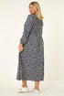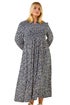 Curve Abstract Print Shirred Midi Dress from Roman. Add a touch of vintage charm to your Autumn Winter wardrobe with this chic Curve abstract print dress. Designed with a stylish shirt collar, this dress features long sleeves with shirred details for added texture. Crafted from a comfortable stretch fabric, this dress is adorned with a striking print, finishing at a modest midi length. Pair with a denim jacket and ankle boots for a stunning fall look!