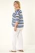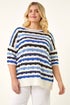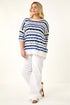 Curve Wave Stripe Jumper from Roman. Elevate your knitwear collection with this chic wavy stripe jumper for the Spring/Summer season. Adorned with an all-over wavy knit detail, this trendy jumper features a classic round neckline and flattering 3/4 sleeves. Finishing at the low hip, this versatile piece is perfect for casual days out. Pair with your favourite jeans and trainers for a stylish off-duty look that's both comfy and fashionable.