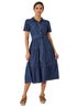 Learn moreDenim Tiered Cotton Midi Dress from Roman. This cool cotton, denim midi dress is a must have for the warmer months. Cut from a 100% cotton, denim fabric this piece is sure to keep you cool and comfortable. It features a fully open front with simple button fastenings and short sleeves. A collared neckline adds a smart element while the midi length skirt falls in tiers in a flattering fit and flare style. It’s finished with a self-tie fabric belt and contrast stitching throughout for added detail. Pair with heeled wedges for a statement Summer look!