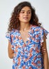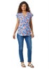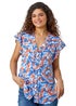 Roman Blue Ditsy Spot Button Through Frill V-Neck Blouse