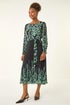 Floral Border Belted Midi Dress from Roman. Step out in style this Autumn/Winter with this charming floral border midi dress. Featuring a flattering round neck and shirred cuffs, this dress is both on-trend and practical. A self-tie belt cinches the waist for a feminine silhouette and adds a touch of elegance. Pair with tights and heeled boots for a sophisticated look that will take you effortlessly from day to evening!