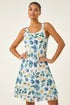 Roman Blue Floral Print Double Layer Dress