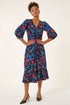Floral Print Lace Trim Midi Dress from Roman. Embrace the floral trend this Autumn Winter with this charming midi dress. Adorned with a pretty floral print and delicate lace trim detailing on the neckline, this dress features elegant 3/4 cuff sleeves. The lovely V-neckline and flattering fit make it a versatile piece for various occasions. For a stunning fall look, pair it with a denim jacket and ankle boots and step out in style!