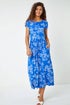 Floral Print Midi Stretch Dress from Roman. A must have for everyoneโs Summer wardrobe, this stretch jersey midi dress is versatile and comfortable. Cut from a soft, stretch fabric this dress features a modest round neckline and short sleeves, perfect for the warmer weather. An elasticated waist creates flattering pleats which fall to its midi length hem. Adorned in an oversized, floral print this piece is designed to pull on overhead, making it perfect for busy Summer days and last minute plans. Pair with fresh trainers or sandals and add a light weight denim jacket for the perfect laid back outfit!