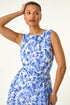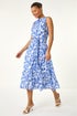 Roman Blue Floral Print Pleat Neck Midi Dress