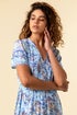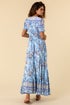Roman Blue Floral Print Shirred Waist Maxi Dress