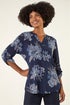 Floral Puff Print Stretch Shirt from Roman. Make a statement this Autumn/Winter season in this fabulous floral print ITY shirt. Featuring a trendy puff print and a flattering notch neck design, this shirt stands out from the crowd. Detailed with chic shoulder pleats and tab fastening on the 3/4 sleeves, this shirt offers both style and comfort. The stretch jersey fabric ensures a lovely fit, while the all-over floral print adds a touch of elegance. Pair with jeans and heeled boots for a fashion-forward look that is sure to turn heads!