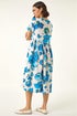 Roman Blue Floral Smock Midi Dress