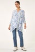 Roman Blue Leaf Print Wrap Hem Tunic Top