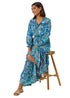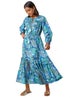Roman Blue Paisley Print Tassel Frill Hem Maxi Dress