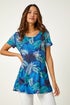 Roman Blue Palm Print Pocket Stretch Tunic Top