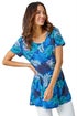 Palm Print Pocket Stretch Tunic Top from Roman. Add some fun tropical prints to your everyday collection with this palm print tunic top! Cut from a stretch jersey fabric, this top features a modest round neckline and simple short sleeves. A bright, palm print adorns the piece, while pocket detail adds a playful yet practical edge. Designed in a relaxed tunic shape this top is perfect paired with cropped jeggings and trainers!