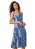 Roman Blue Patchwork Print Fit and Flare Skater Dress