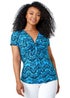 Roman Blue Petite Aztec Knot Detail V-Neck Stretch Top