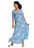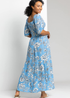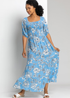 Roman Blue Petite Floral Print Shirred Bodice Maxi Dress