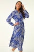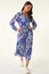 Roman Blue Petite Print Tiered Shirt Midi Dress