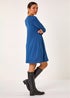 Roman Blue Side Button Detail Stretch Swing Dress
