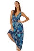 Roman Blue Sleeveless Floral Print Maxi Dress