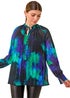 Roman Blue Watercolour Tie Neck Pleated Blouse
