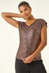 Sequin V-Neck Stretch Top from Roman. Put a touch of sparkle into your Autumn Winter wardrobe with our stunning sequin v-neck top. The trendy v-neckline and short sleeves make this top a stylish choice for any occasion, cut from a comfortable woven fabric with a sequin embellishment for a touch of glamour. Pair with leather trousers and heeled boots for that perfect party outfit!