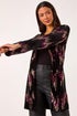 Sequin Velvet Longline Jacket from Roman. Add a touch of glamour to your Autumn/Winter wardrobe with this stunning velvet jacket. Shimmering swirl sequins adorn the luxurious velvet fabric, creating a statement piece that is perfect. The longline silhouette and elegant edge to edge opening add sophistication, while the full lining ensures comfort and warmth. Pair it with a chic midi dress and heels for a show-stopping ensemble that will turn heads wherever you go!