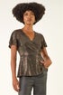 Roman Bronze Sparkly Wrap Front Tunic Top