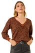 Roman Brown Animal Print V-Neck Boyfriend Jumper