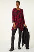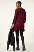 Brush Print Hanky Hem Top from Roman. Unleash your artistic side with this stunning abstract brush print hanky hem top, perfect for the Autumn season. Featuring a classic round neck and stylish 3/4 sleeves, this thigh-length top drapes beautifully with its unique hanky hem detail. Crafted from stretch jersey fabric, it offers comfort and style in one. Pair with your favourite jeans and ankle boots for an effortlessly chic look that's perfect for any casual outing!