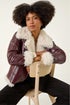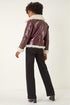 Roman Burgundy Contrast Faux Leather Aviator Coat