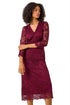 Corded Lace Midi Dress from Roman. Add a touch of elegance to your Autumn/Winter wardrobe with this stunning midi dress. The full corded lace overlay in wine is beautifully contrasted against a soft black lining, adding a sophisticated touch. Designed in a flattering midi length, this dress is perfect for special occasions. Pair with heels and a chic blazer for a timeless and refined look that will turn heads wherever you go!