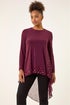 Roman Burgundy Foil Spot Print Chiffon Hem Top