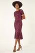 Leaf Lace Sequin Midi Dress from Roman. Crafted from a beautiful lace fabric with sequin detailing, this dress is fitted at the bust and flares out elegantly sculpting your silhouette, finished with a flared hem with godet paneling for extra swing in your step. In a beautiful shade, this dress is perfect for the upcoming party season. Wear yours with sparkly heels and clutch bag for a statement party look.