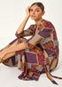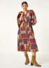 • Roman Burgundy Patchwork Midi Shirt Dress