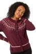 Petite Fairisle Button Cardigan from Roman. Add playful prints to your cardigan collection with this Fairisle moment! A classic for the colder months, this piece features a round neckline and cosy full-length sleeves. Cut from a soft, wool blend fabric, this cardigan features a pretty placement print with contrast at the hem and cuffs. A full button-up front provides a warm and secure fit and allows for customisable styling. Pair with jeans and boots for an on-trend style this season!
