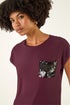 Roman Burgundy Sequin Pocket Side Ruched T-Shirt