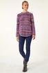 Spacedye Curved Hem Jumper from Roman. Add a touch of Autumn charm to your casual wardrobe with this spacedye curved hem jumper. Crafted from a lovely multi-colour yarn in warming wine hues, this sweater features long sleeves and a classic round neckline. The unique spacedye design adds a fashionable twist while the curved hem provides a stylish finish. Perfect for cosy days, pair this jumper with jeans and ankle boots for a relaxed and chic look!