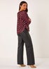 Spot Foil Print Blouse from Roman. Embrace the shimmer and shine this Autumn/Winter season with this stunning split foil blouse. The all-over spot foil design catches the light perfectly, while the elegant v-neckline and tie detail at the neckline add a touch of femininity. Featuring long sleeves and a mock button front, this blouse is perfect for adding a touch of glamour to your wardrobe. Pair with pleather trousers and heeled boots for a party-ready look that's sure to turn heads!