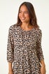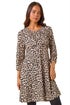 Petite Animal Print Gathered Waist Dress from Roman. Go wild this season with our Petite animal print dress! Designed with a round neckline and long cuff sleeves for extra warmth, this knee-length dress features a flattering fit and flare silhouette with a gathered waist. Crafted from stretch jersey fabric, this dress is easy to wear and style. Embrace the Autumn vibes by pairing it with a denim jacket and boots for a complete fall look!