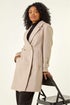 Petite Double Breasted Tailored Coat from Roman. Elevate your outerwear game this Autumn and Winter with our tailored button coat. Featuring a classic revere collar and a double breasted front, this knee length coat exudes sophisticated style. The set-in sleeves and functional side pockets add both elegance and practicality to this chic piece. Perfect for layering over knitwear and jeans for a timeless and polished look!